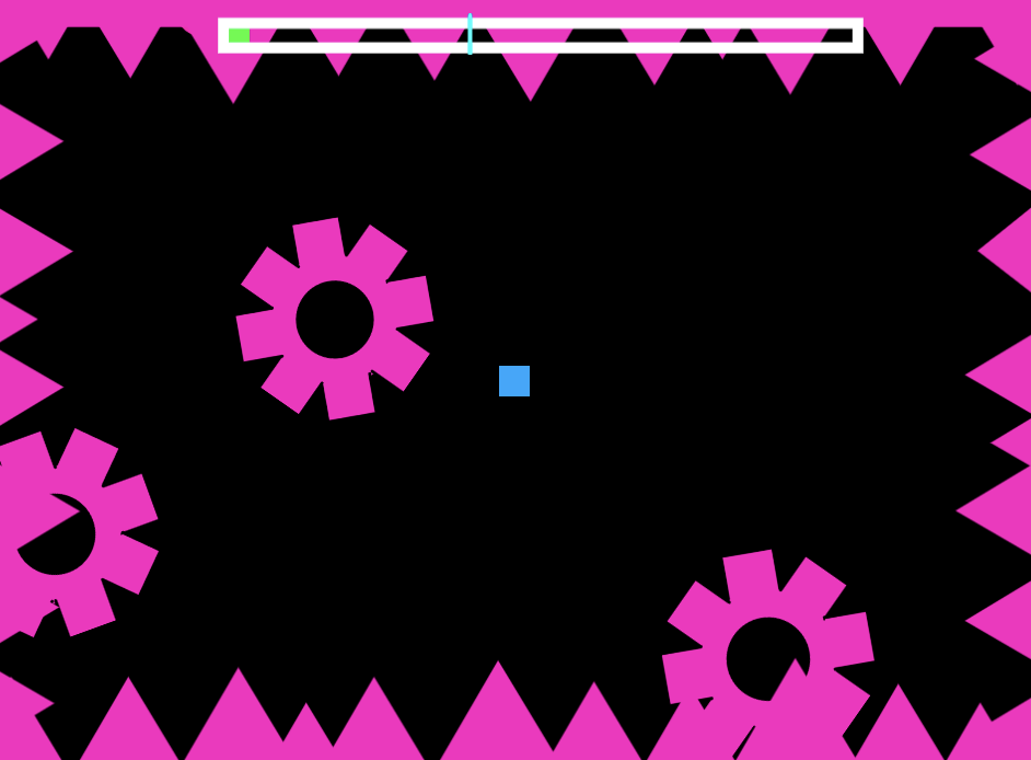This is one of my new scratch projects called "Just Shapes and Beats". Move around with the arrow keys and dash with space bar. Try to get to the end.