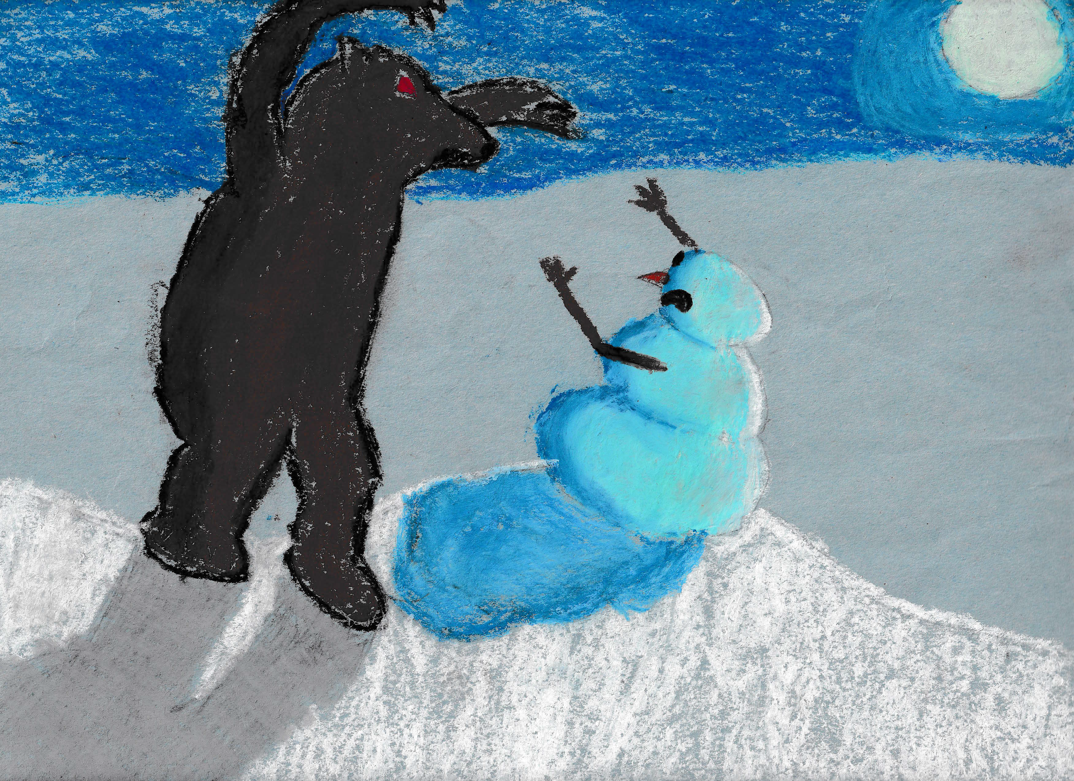 In this picture I drew, the bear has an evil spirit in him. That is why his shadow is grey and he has a black outline.